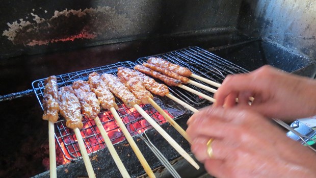 chiếc đũa nhỏ hoặc thân cây sả và nướng chín trên than hồng. Khi chín, nem có